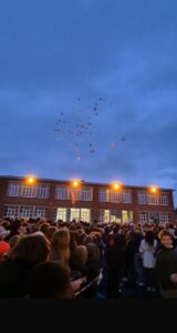 Peu avant le lever du jour, un lâcher de ballons aux couleurs de Marie (le bleu et le blanc) a été effectué par les élèves délégués.