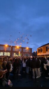 Peu avant le lever du jour, un lâcher de ballons aux couleurs de Marie (le bleu et le blanc) a été effectué par les élèves délégués.
