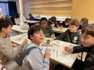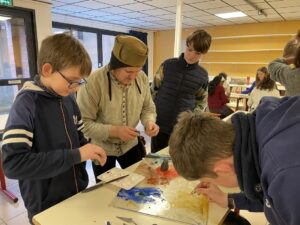 Les élèves du niveau 5ème ont récemment eu la chance d’accueillir Gossuin l’enlumineur,  un artisan passionné qui leur a fait découvrir l’art de l’enluminure médiévale.